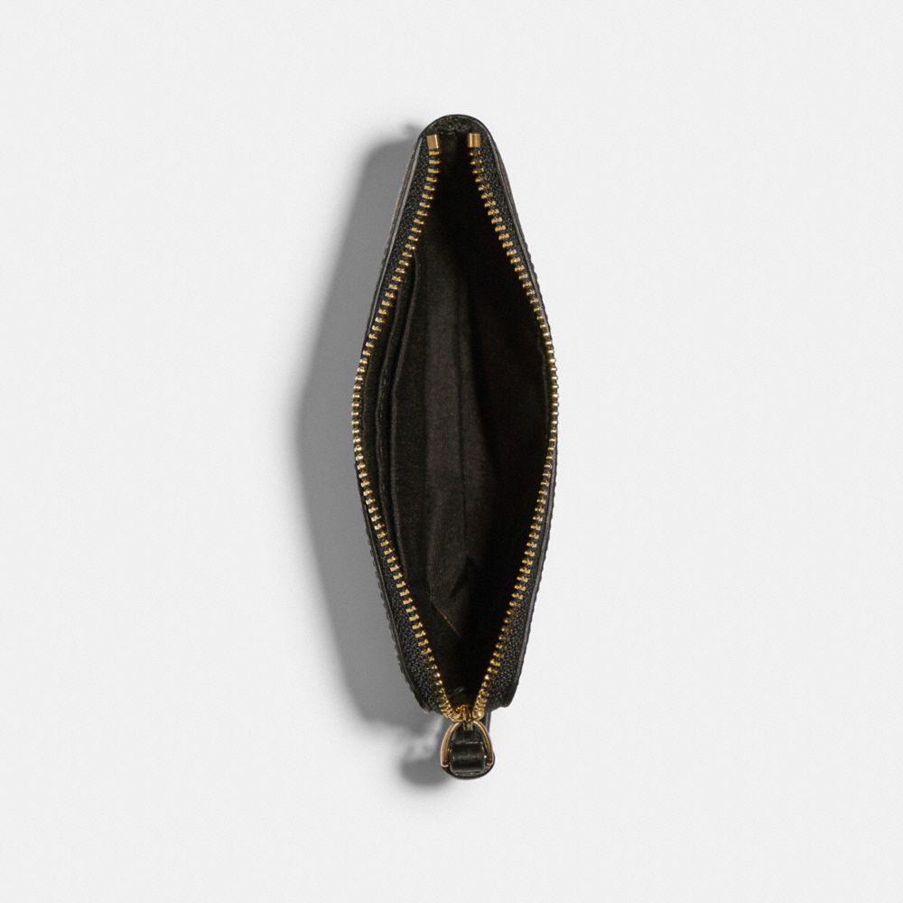 Signature coated canvas with smooth leather details| Two credit card slots| Zip-top closure, fabric lining| Wrist strap attached| 6 1/4" (L) x 4" (H) x 1/2" (W)| Fits an iPhone or Android