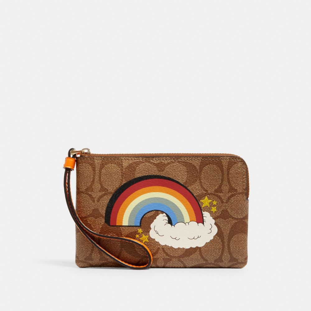 CORNER ZIP WRISTLET IN SIGNATURE CANVAS WITH RAINBOW (COACH C1869)
