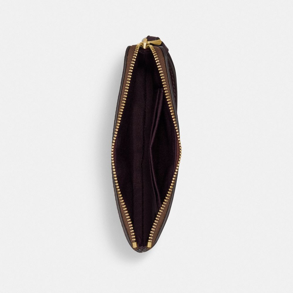 Signature coated canvas with smooth leather details| Two credit card slots| Zip-top closure, fabric lining| Wrist strap attached| 6 1/4" (L) x 4" (H) x 1/2" (W)| Fits an iPhone or Android