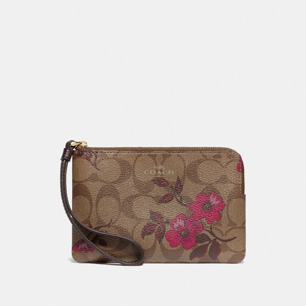 COACH FACTORY OUTLET PRICE CHART - F87780 - CORNER ZIP WRISTLET IN SIGNATURE CANVAS WITH VICTORIAN FLORAL PRINT - IM/KHAKI BERRY MULTI