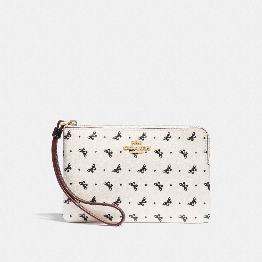 COACH FACTORY OUTLET PRICE CHART - F31244 - CORNER ZIP WRISTLET WITH BUTTERFLY DOT PRINT - CHALK/BLACK/LIGHT GOLD