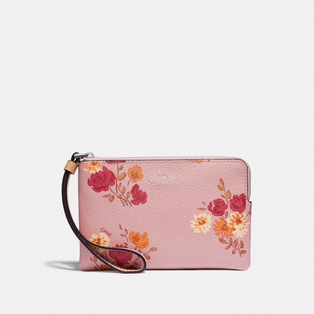 COACH FACTORY OUTLET PRICE CHART - F73348 - CORNER ZIP WRISTLET WITH PAINTED PEONY PRINT - CARNATION MULTI/LIGHT KHAKI/SILVER