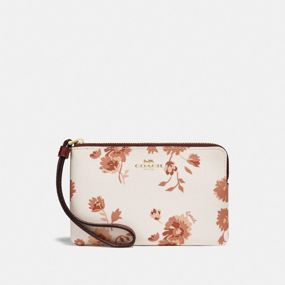 COACH FACTORY OUTLET PRICE CHART - F78037 - CORNER ZIP WRISTLET WITH PRAIRIE DAISY CLUSTER PRINT - CHALK MULTI/IMITATION GOLD