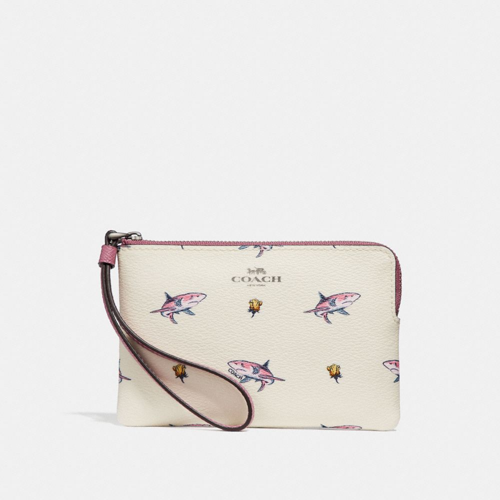 CORNER ZIP WRISTLET WITH SHARK ROSE PRINT (COACH F30216)