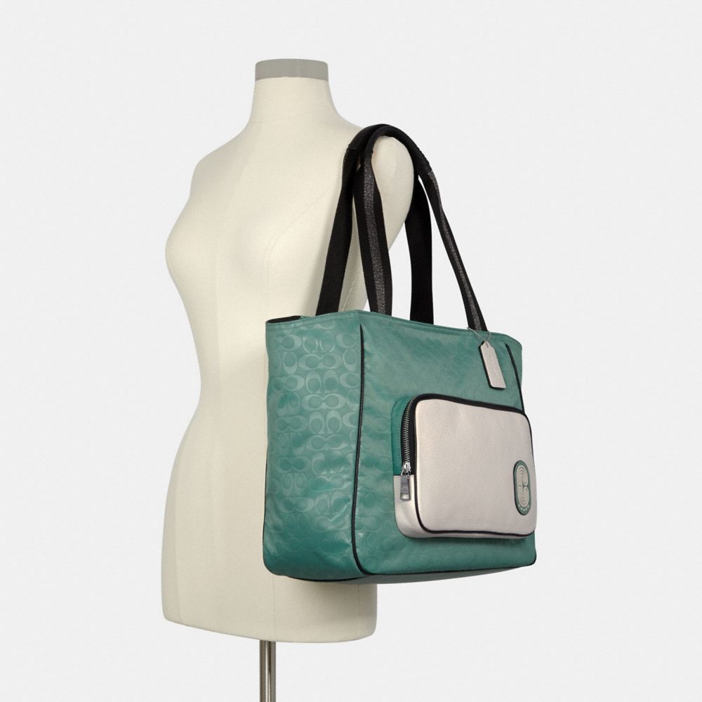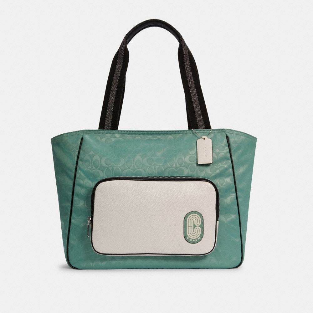 COACH FACTORY OUTLET PRICE CHART - C3656 - COURT TOTE IN COLORBLOCK SIGNATURE NYLON - SV/WASHED GREEN MULTI
