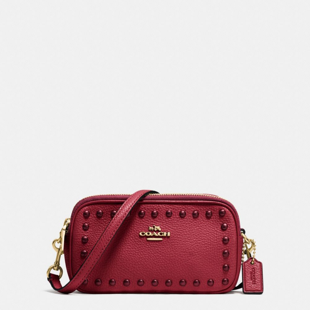 CROSSBODY POUCH IN LACQUER RIVETS PEBBLE LEATHER (COACH F53450)