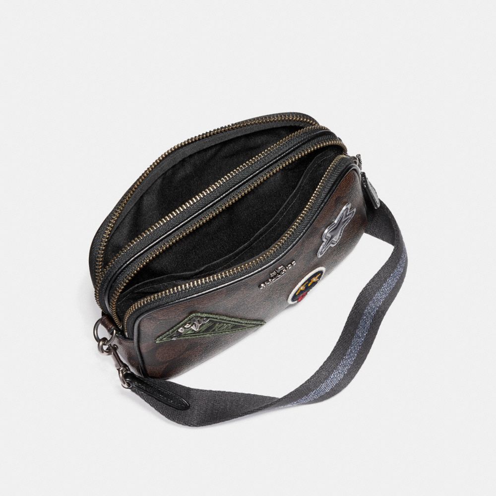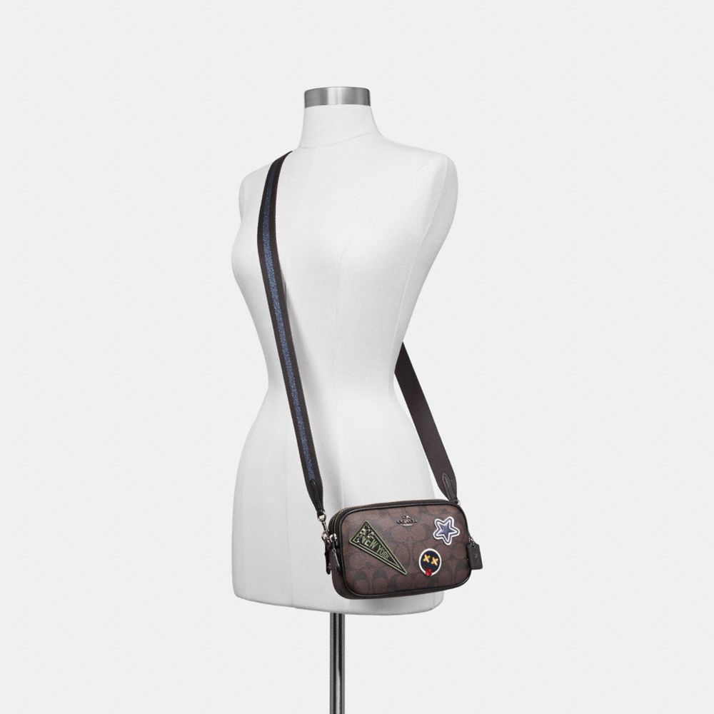 CROSSBODY POUCH IN SIGNATURE COATED CANVAS WITH VARSITY PATCHES (COACH F12084)