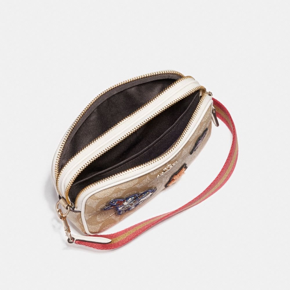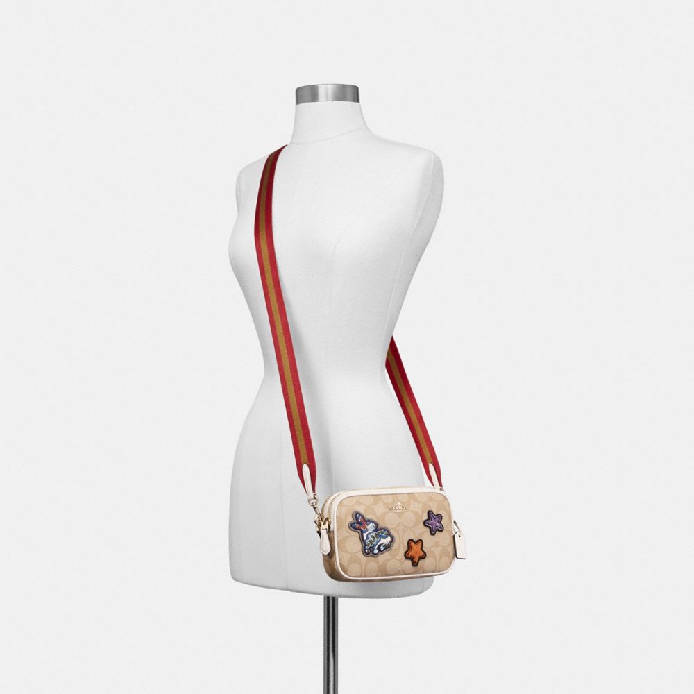 CROSSBODY POUCH IN SIGNATURE COATED CANVAS WITH VARSITY PATCHES (COACH F20963)