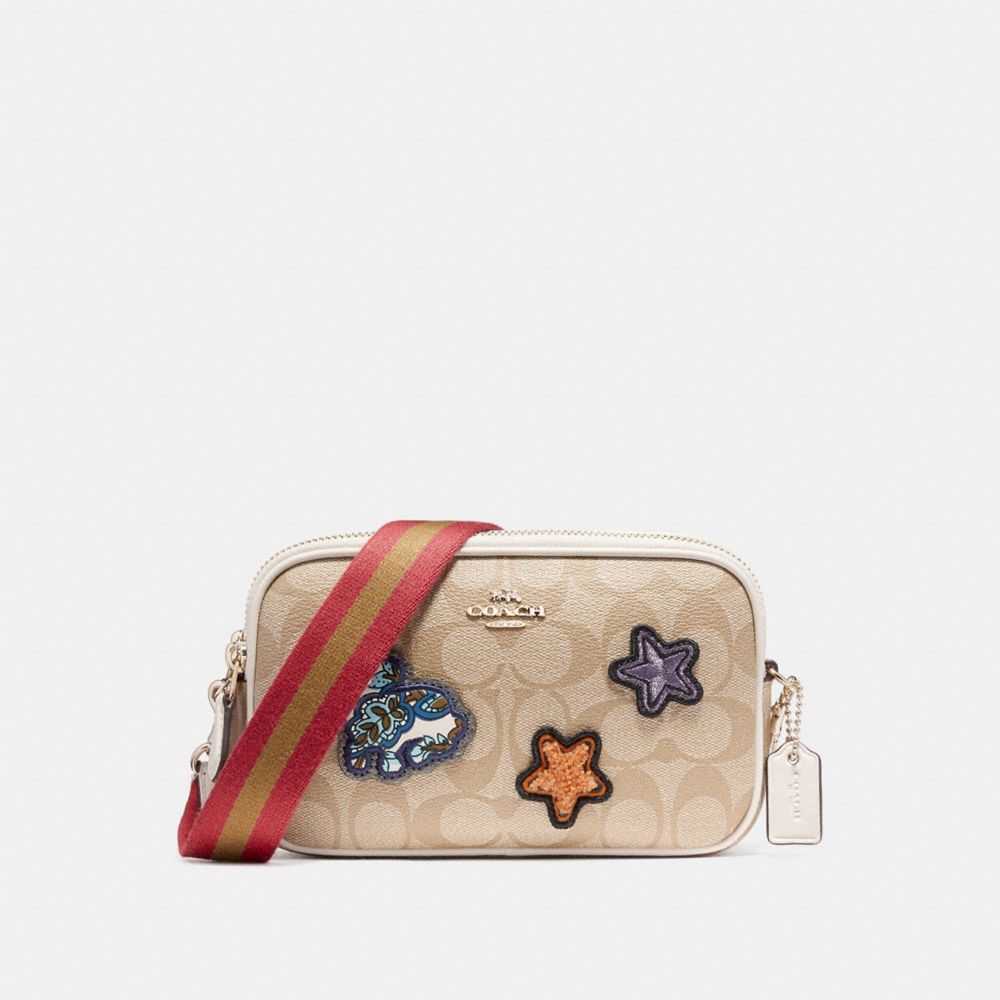 COACH FACTORY OUTLET PRICE CHART - F20963 - CROSSBODY POUCH IN SIGNATURE COATED CANVAS WITH VARSITY PATCHES - LIGHT GOLD/LIGHT KHAKI