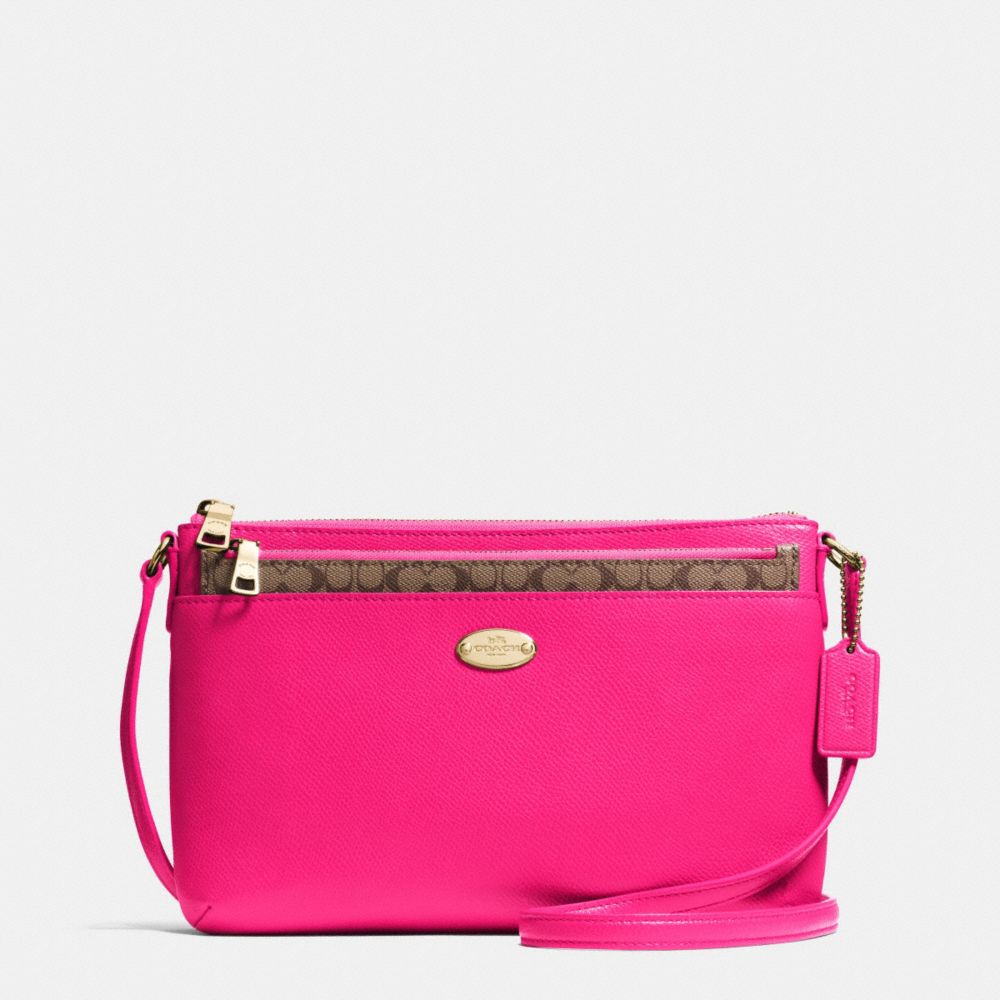COACH FACTORY OUTLET PRICE CHART - F52881 - CROSSGRAIN LEATHER EAST/WEST POP CROSSBODY - IMITATION GOLD/PINK RUBY