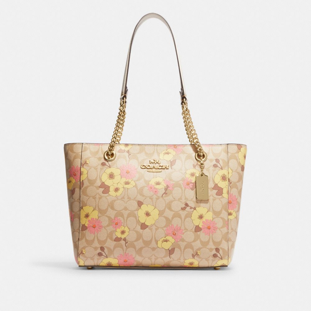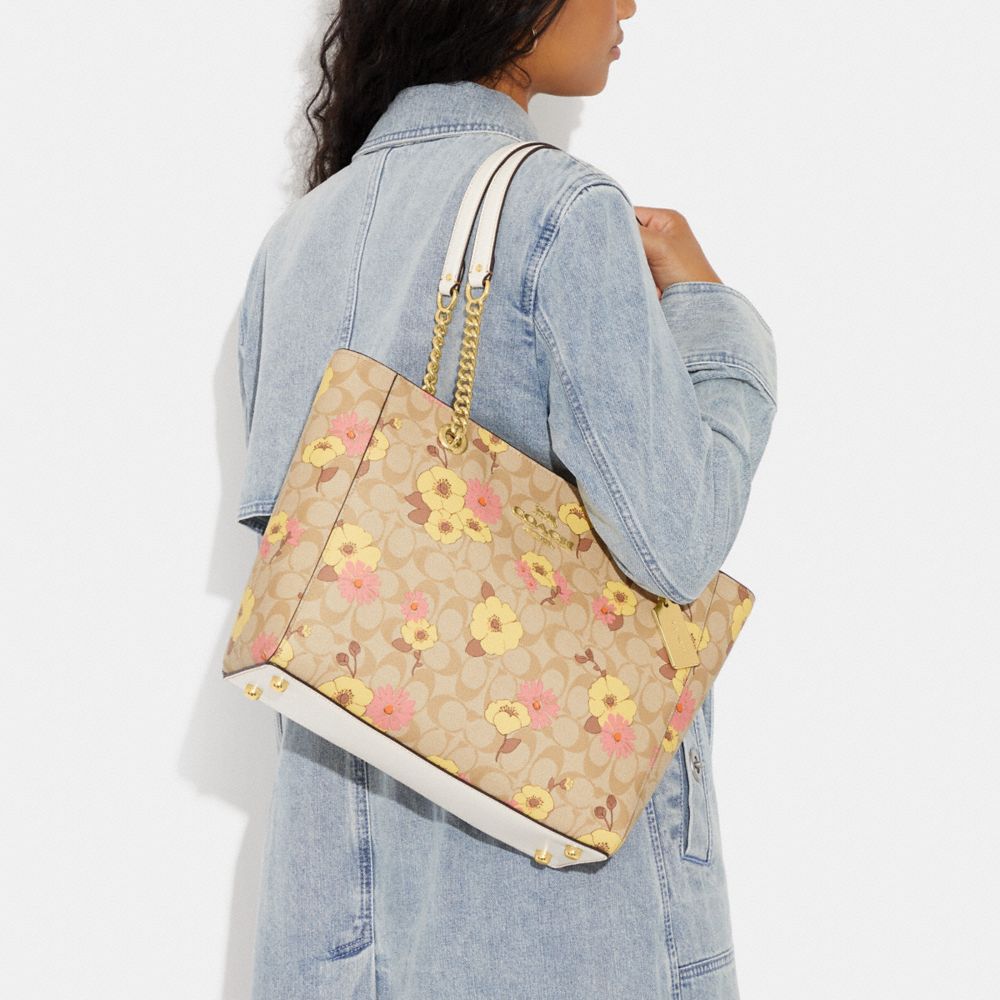 CAMMIE CHAIN TOTE IN SIGNATURE CANVAS WITH FLORAL CLUSTER PRINT (COACH CH545)