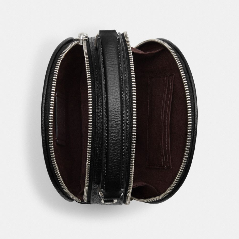 | Signature jacquard and refined pebble leather | Two credit card slots | Double zip closure, fabric lining | Top handle with 1 1/4" drop | Detachable strap with 23 1/4" drop for shoulder or crossbody wear | 6 3/4" (L) x 6" (H) x 2 1/2" (W)|Style No. CO985|