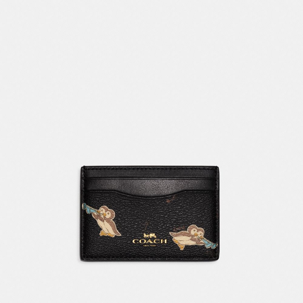 COACH FACTORY OUTLET PRICE CHART - CF542 - CARD CASE WITH PENGUIN PRINT - GOLD/BLACK MULTI