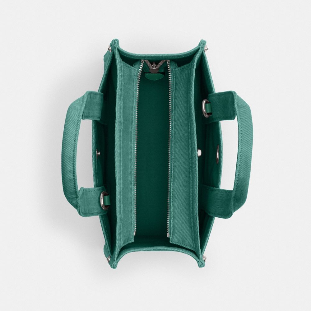 | Denim | Zip-top closure, fabric lining | Handles with 4" drop | Outside turnlock and snap pockets | Detachable strap with 24" drop for shoulder or crossbody wear | Fits an iPad | 10 1/4" (L) x 7 3/4" (H) x 5" (W) | Exclusive of trim, this piece is crafted of cotton sourced from farms that use regenerative agricultural practices—those that help to maintain and rejuvenate land, increase biological diversity and soil health, and could lead to increased carbon absorption|Style No. CBG46|