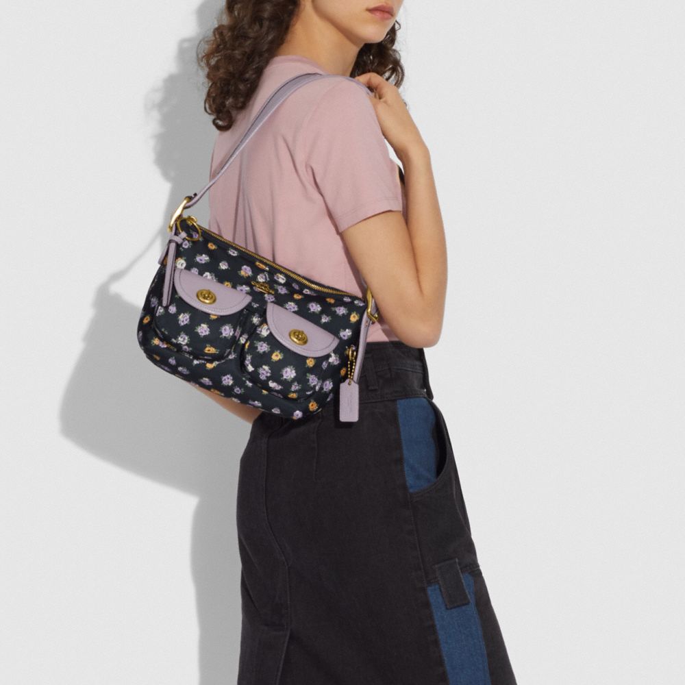 CARGO SHOULDER BAG WITH VINTAGE ROSE PRINT (COACH 596)