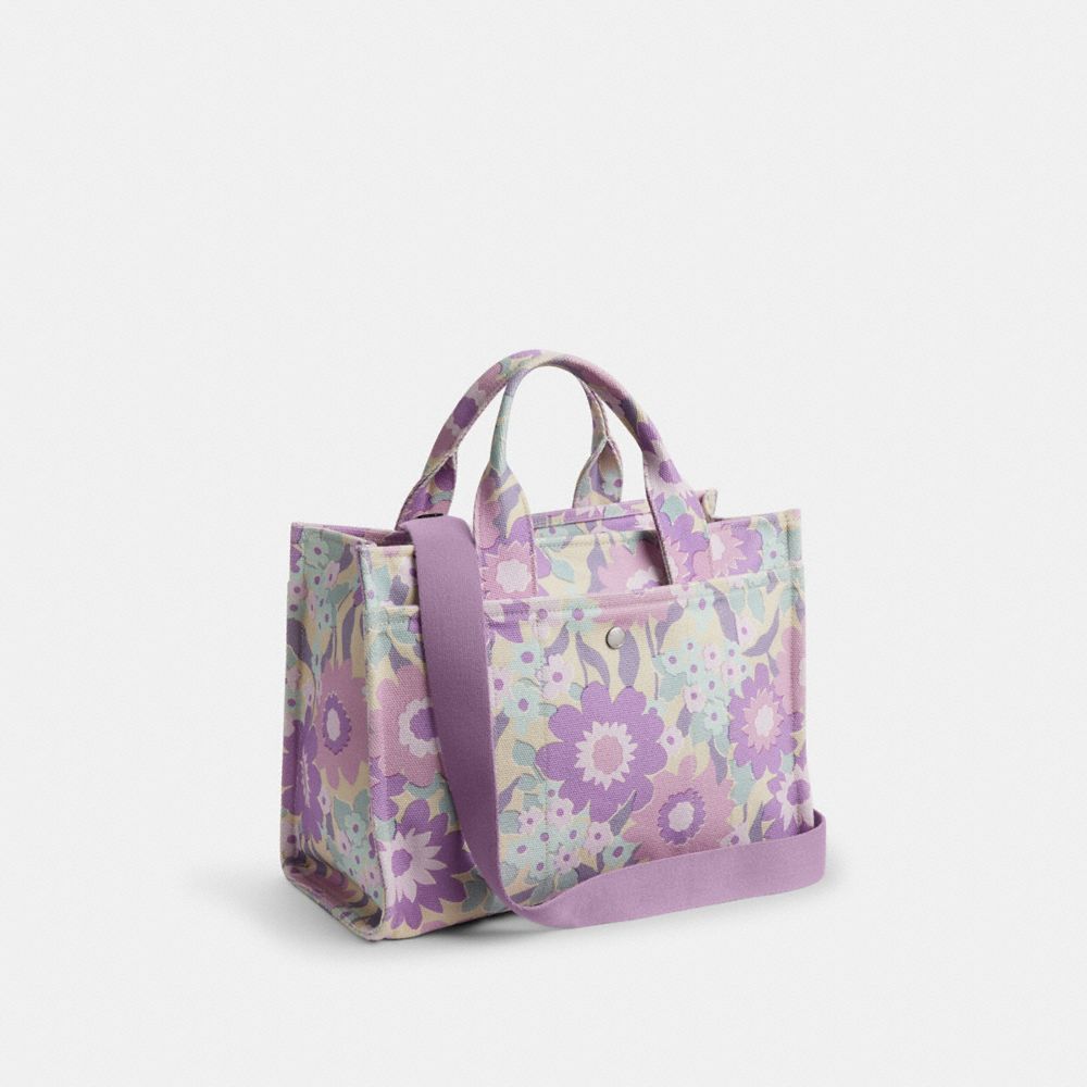 COACH FACTORY OUTLET PRICE CHART - CBG42 - CARGO TOTE BAG WITH FLORAL PRINT - SILVER/IVORY PURPLE