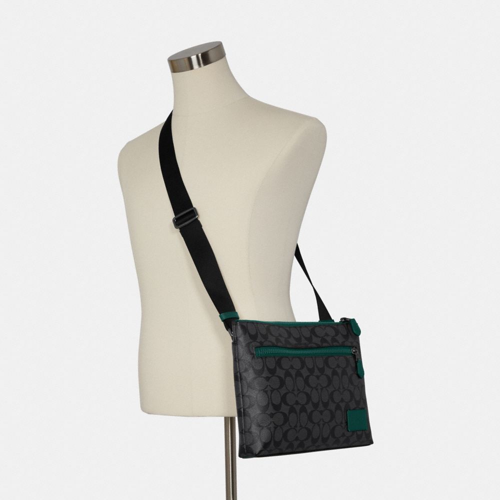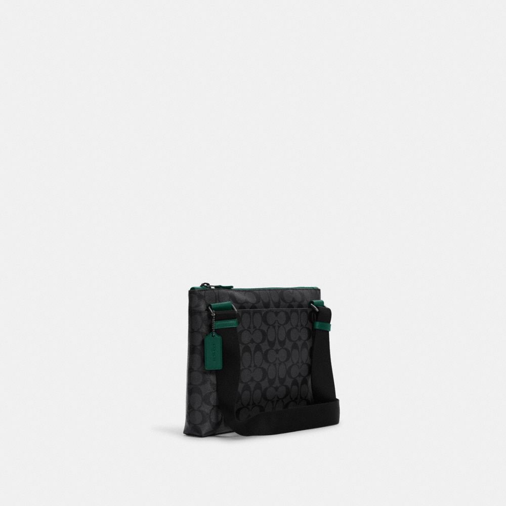 COACH FACTORY OUTLET PRICE CHART - C6766 - CARRIER ZIP CROSSBODY IN COLORBLOCK SIGNATURE CANVAS - GUNMETAL/CHARCOAL FOREST