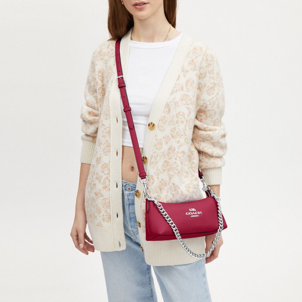 | Refined pebble leather | Inside zip pocket | Zip-top closure, fabric lining | Detachable chain strap with 8 1/4" drop | Detachable strap with 22 3/4" drop for shoulder or crossbody wear | 10" (L) x 4 1/4" (H) x 3 1/4" (W)|Style No. CL407|