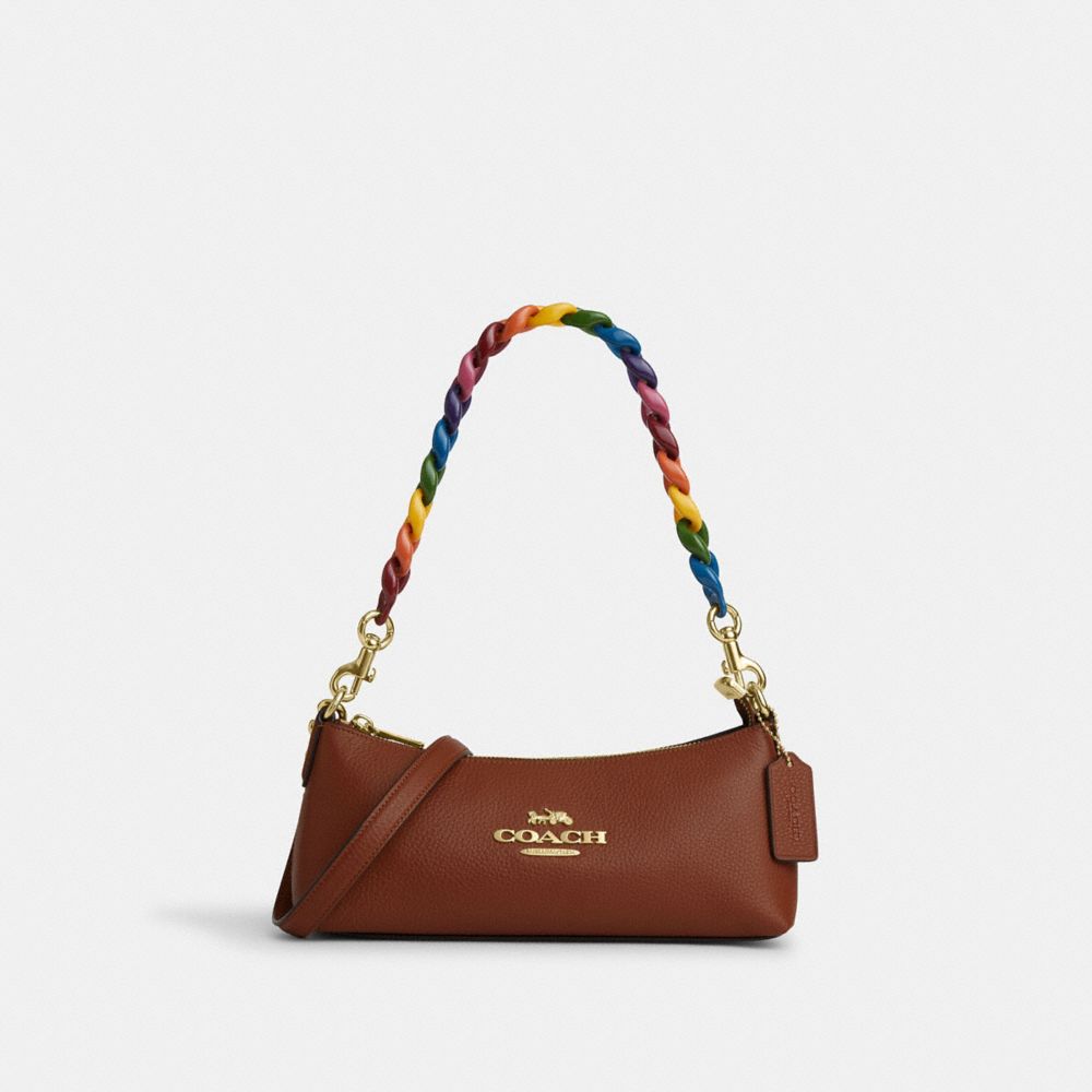COACH FACTORY OUTLET PRICE CHART - CP097 - CHARLOTTE SHOULDER BAG - GOLD/REDWOOD MULTI