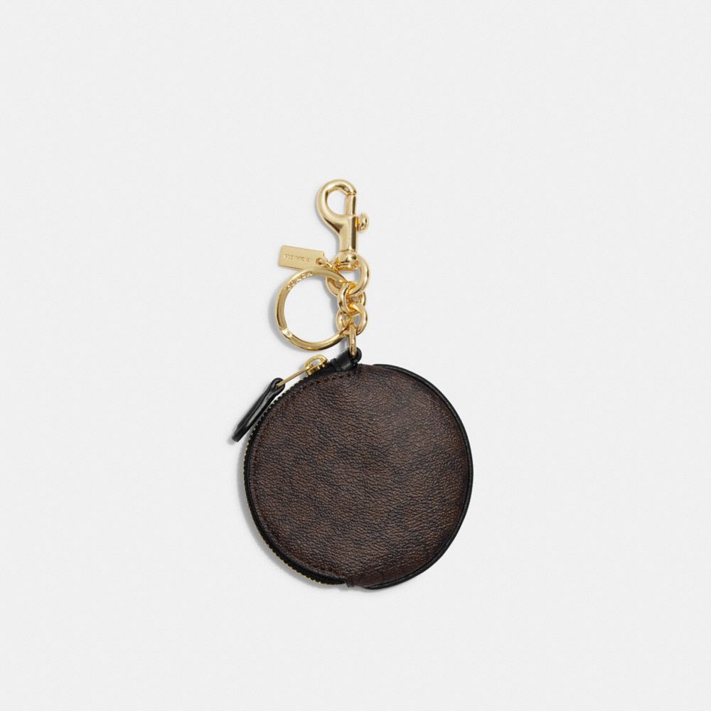 COACH FACTORY OUTLET PRICE CHART - 89987 - CIRCULAR COIN POUCH BAG CHARM IN SIGNATURE CANVAS - GOLD/BROWN BLACK
