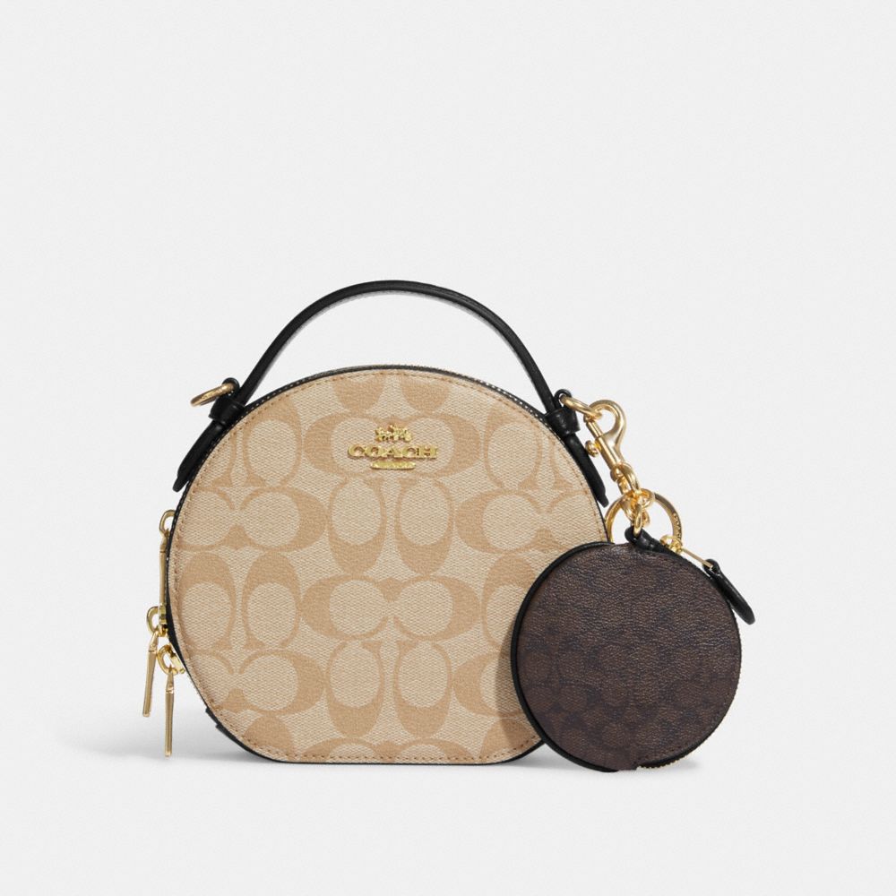 CIRCULAR COIN POUCH BAG CHARM IN SIGNATURE CANVAS (COACH 89987)