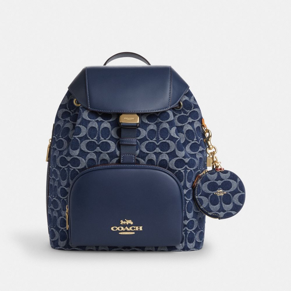 COACH FACTORY OUTLET PRICE CHART - CZ256 - CIRCULAR COIN POUCH BAG CHARM IN SIGNATURE DENIM - GOLD/DEN GOLD/NATURAL