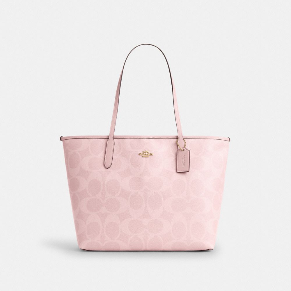 COACH FACTORY OUTLET PRICE CHART - CAL49 - CITY TOTE BAG IN SIGNATURE CANVAS - GOLD/POWDER PINK
