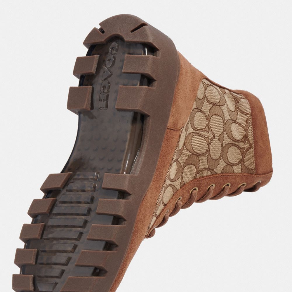 | Suede and Signature jacquard upper | Fabric lining and footbed | Rubber outsole | Lace-up closure | Proprietary Coach CitySole technology | Built for maximum comfort and flexibility | Cushioned insole provides all-day support | This Coach piece is crafted of our environmentally conscious Signature jacquard made from a blend of organic cotton and recycled plastic bottles|Style No. CE954|