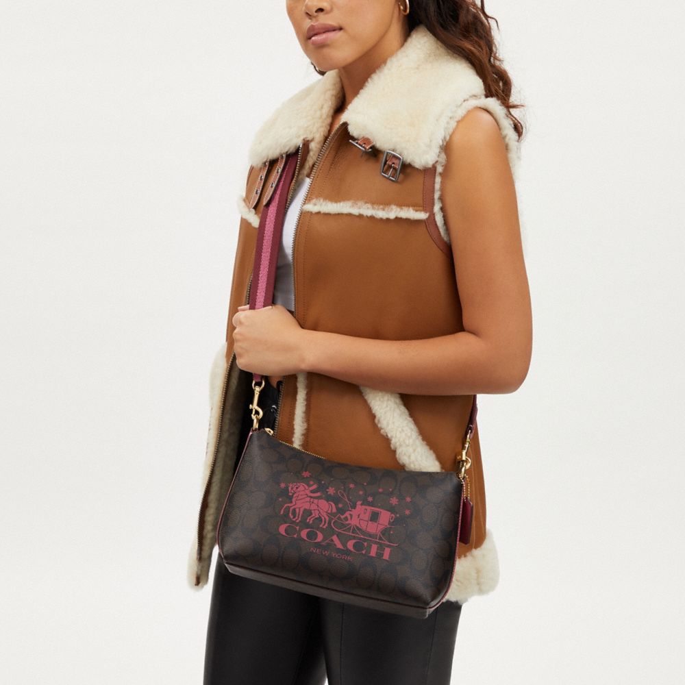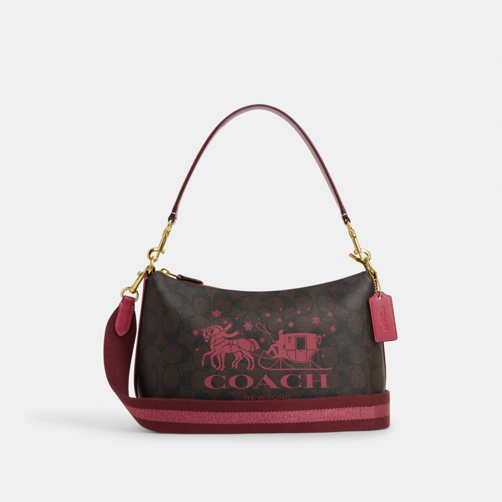 CLARA SHOULDER BAG IN SIGNATURE CANVAS WITH HORSE AND SLEIGH (COACH CN686)