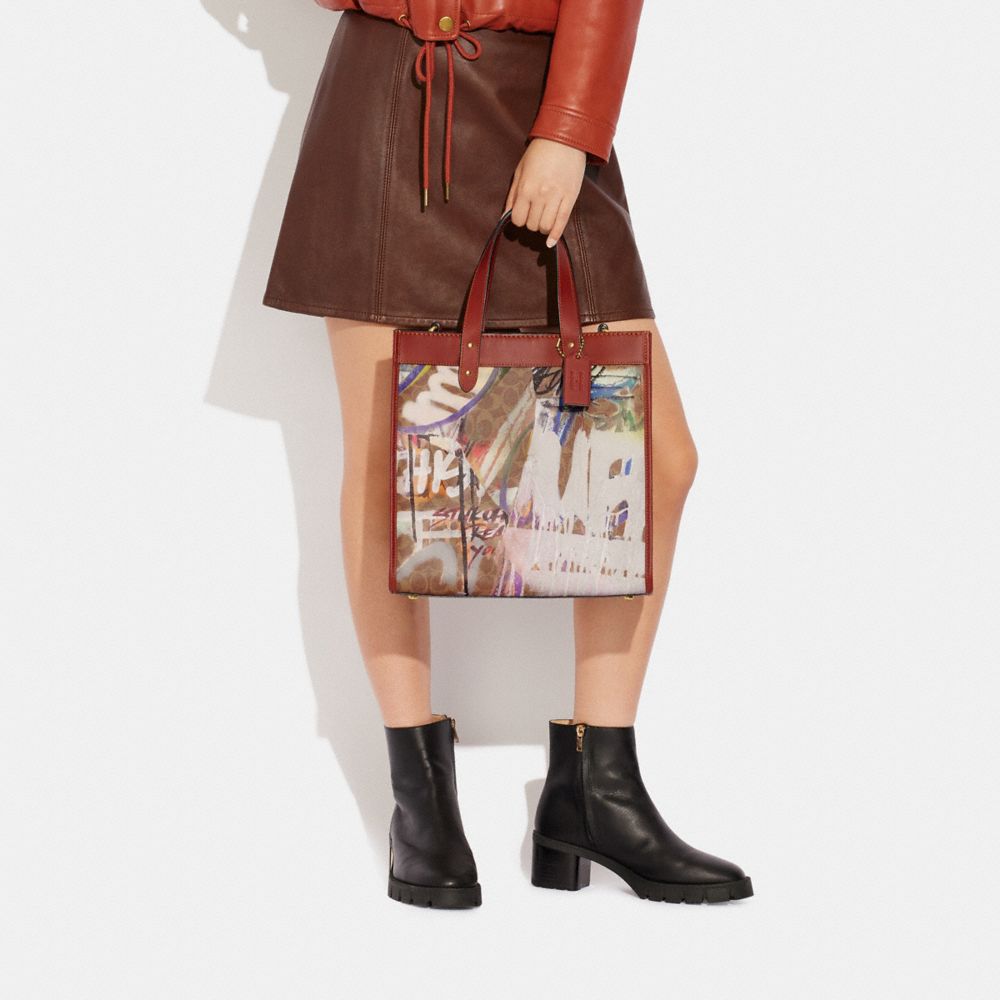 COACH FACTORY OUTLET PRICE CHART - CD719 - COACH X MINT + SERF FIELD TOTE IN SIGNATURE CANVAS - BRASS/TAN RUST MULTI