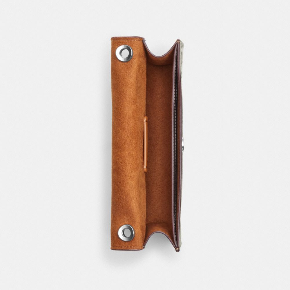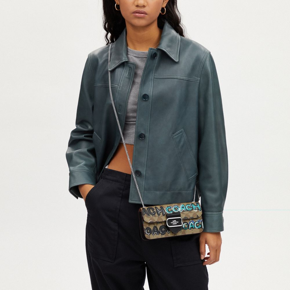 | Signature coated canvas and smooth leather | Inside multifunction pocket | Snap closure, fabric lining | Outside open pocket | Detachable strap with 23 3/4" drop for shoulder or crossbody wear | 7 3/4" (L) x 4 1/4" (H) x 1 3/4" (W) | Coach x Mint + Serf | ©Mint + Serf|Style No. CM214|