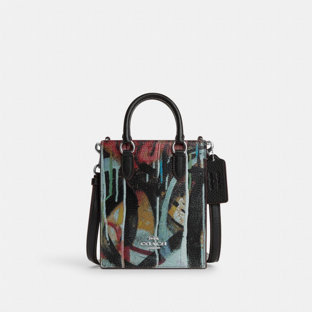 COACH FACTORY OUTLET PRICE CHART - CM213 - COACH X MINT + SERF NORTH SOUTH MINI TOTE - SILVER/BLACK MULTI
