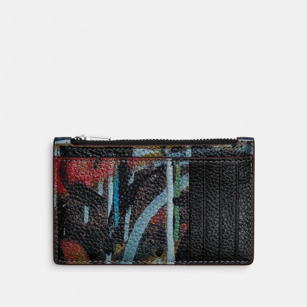 COACH FACTORY OUTLET PRICE CHART - CM159 - COACH X MINT + SERF ZIP CARD CASE - SILVER/BLACK MULTI
