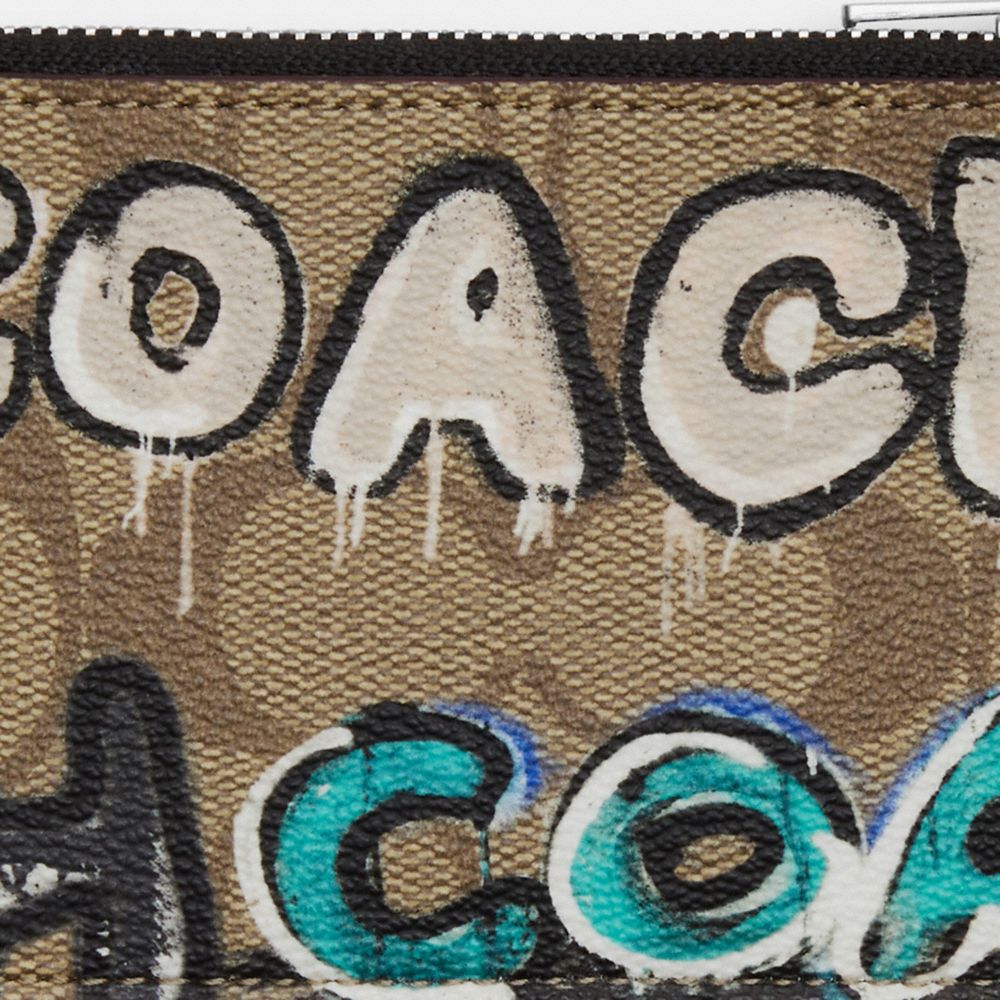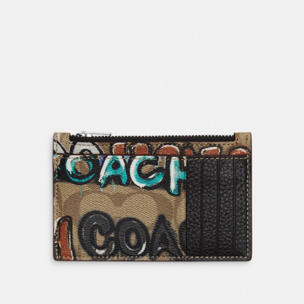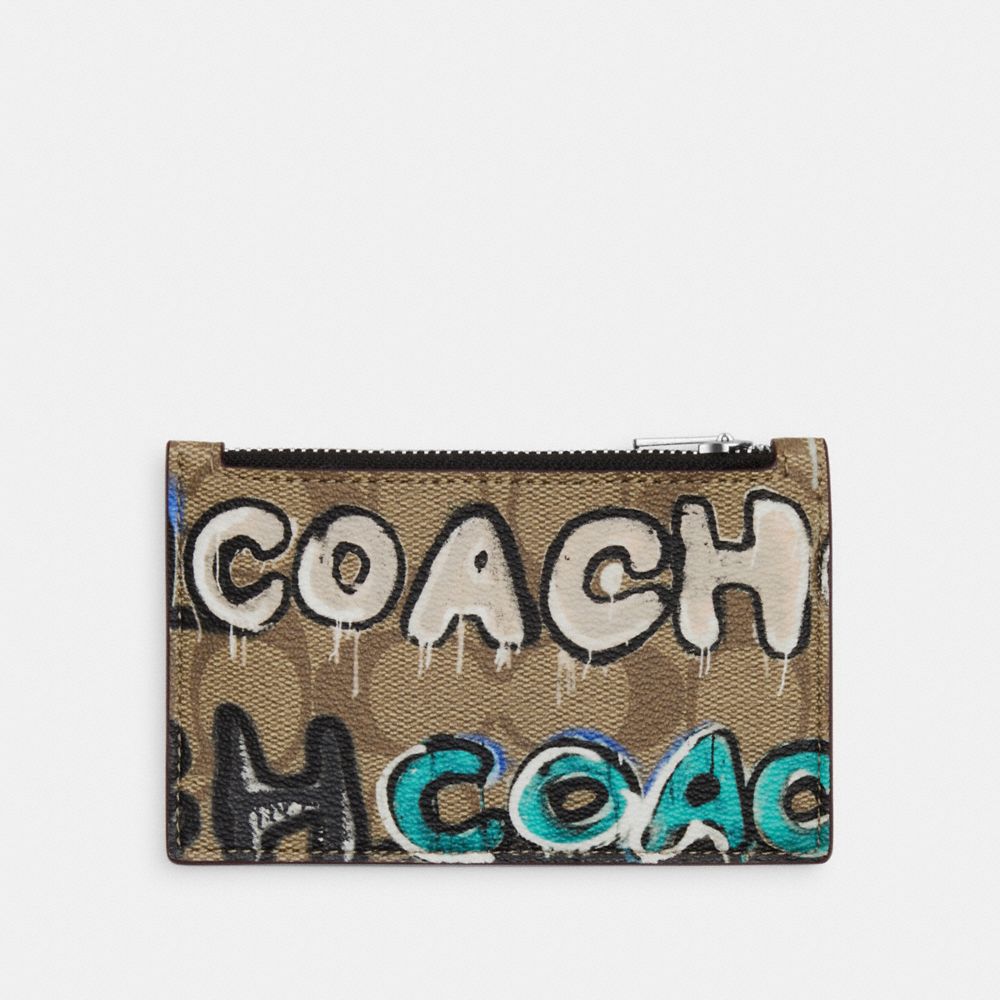 COACH FACTORY OUTLET PRICE CHART - CM158 - COACH X MINT + SERF ZIP CARD CASE IN SIGNATURE CANVAS - SILVER/KHAKI MULTI