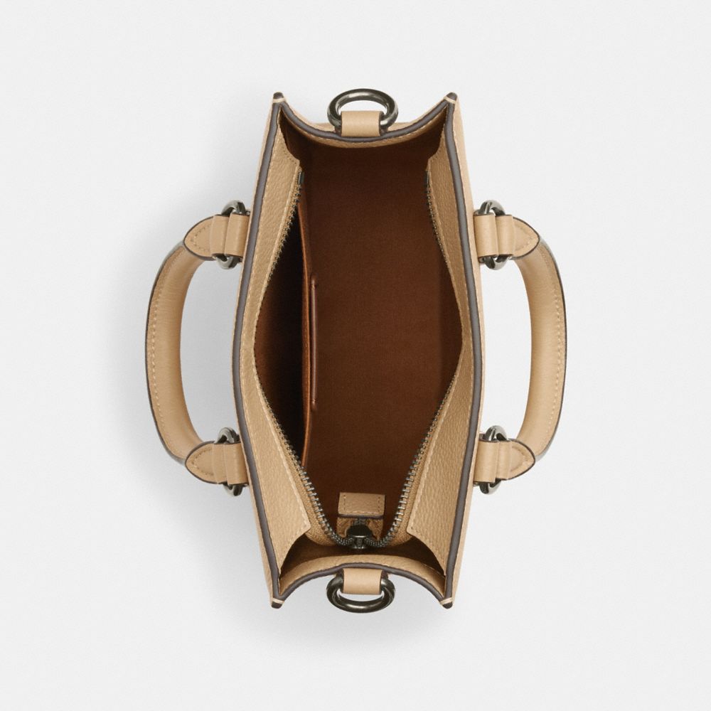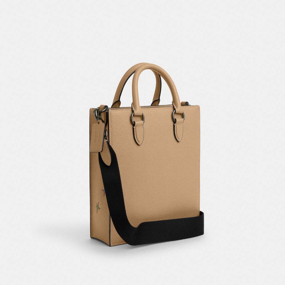 | Refined pebble leather | Inside multifunction pocket | Zip-top closure, fabric lining | Handles with 3" drop | Detachable strap with 25" drop for shoulder or crossbody wear | 8" (L) x 9 3/4" (H) x 3" (W) | Coach x Observed By Us