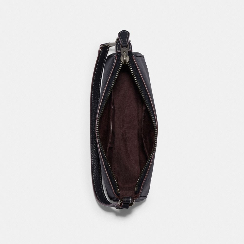 | Refined pebble leather | Two credit card slots | Inside multifunction pocket | Zip-top closure, fabric lining | Handle with 6 1/4" drop | 7 1/2" (L) x 4 1/2" (H) x 2" (W) | This special Coach x Peanuts collaboration combines our legacy of leathercraft with the playful attitude of the Peanuts crew | © 2022 PEANUTS WORLDWIDE|Style No. CE859|
