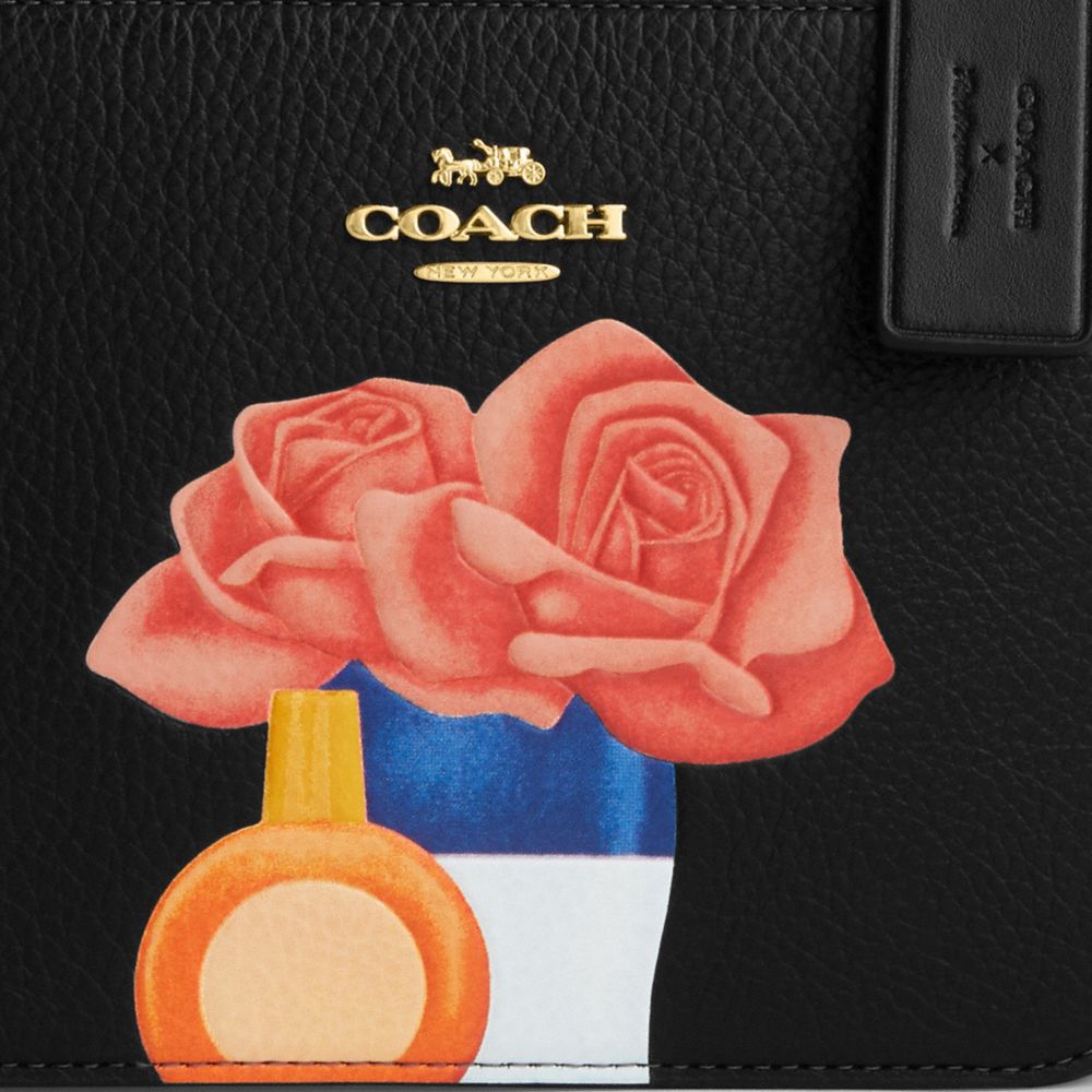 | Refined pebble leather and smooth leather | Double zip closure, fabric lining | Top handle with 1/2" drop | Detachable strap with 22 1/2" drop for shoulder or crossbody wear | 7" (L) x 5 1/2" (H) x 2 1/2" (W) | Coach x Tom Wesselmann | © Estate of Tom Wesselmann. Licensed by Artestar, New York.|Style No. CQ047|