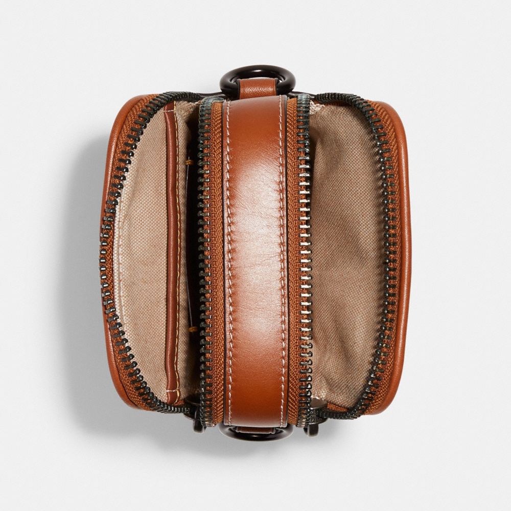 | Signature textile jacquard and glovetanned leather | Inside multifunction pocket | Double zip closure, fabric lining | Outside slip pocket | Detachable strap with 21 1/2" drop for shoulder or crossbody wear | 4 3/4" (L) x 7" (H) x 2 1/4" (W) | Coach x Tom Wesselmann | © Estate of Tom Wesselmann. Licensed by Artestar, New York.|Style No. CA309|