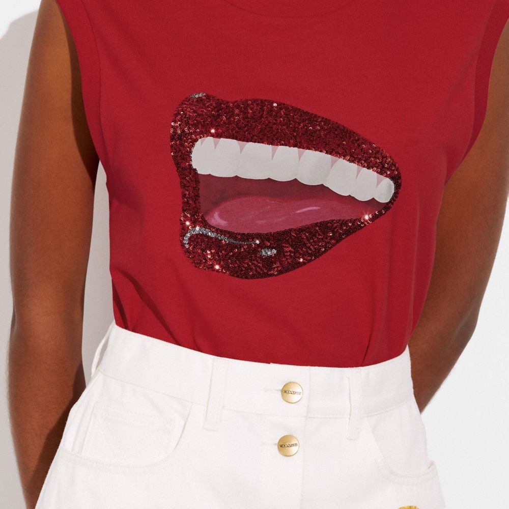 COACH FACTORY OUTLET PRICE CHART - CA698 - COACH X TOM WESSELMANN SLEEVELESS T SHIRT IN ORGANIC COTTON - RED