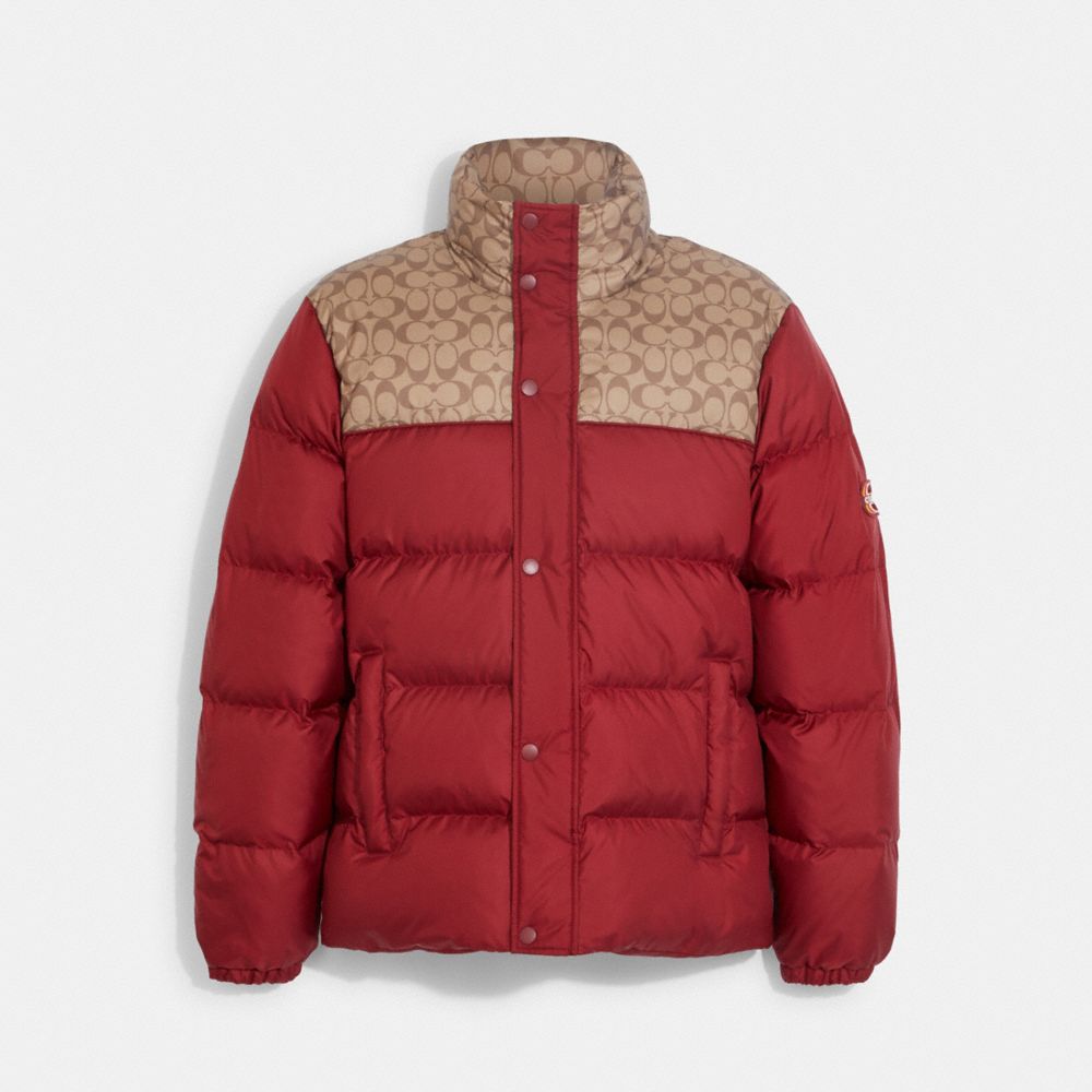 COACH FACTORY OUTLET PRICE CHART - CE333 - COLORBLOCK SIGNATURE PUFFER JACKET - KHAKI/RED