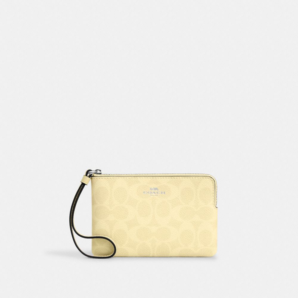 COACH FACTORY OUTLET PRICE CHART - CAQ75 - CORNER ZIP WRISTLET IN SIGNATURE CANVAS - SILVER/HAY