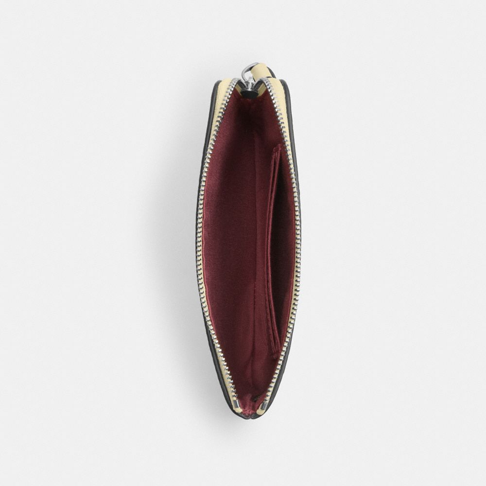 | Signature coated canvas | Two credit card slots | Zip-top closure, fabric lining | Wrist strap attached | 6 1/4" (L) x 4" (H) x 1/2" (W)|Style No. CAQ75|