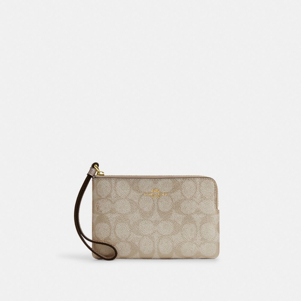 COACH FACTORY OUTLET PRICE CHART - CW964 - CORNER ZIP WRISTLET IN SIGNATURE CANVAS - GOLD/CHAMPAGNE MULTI