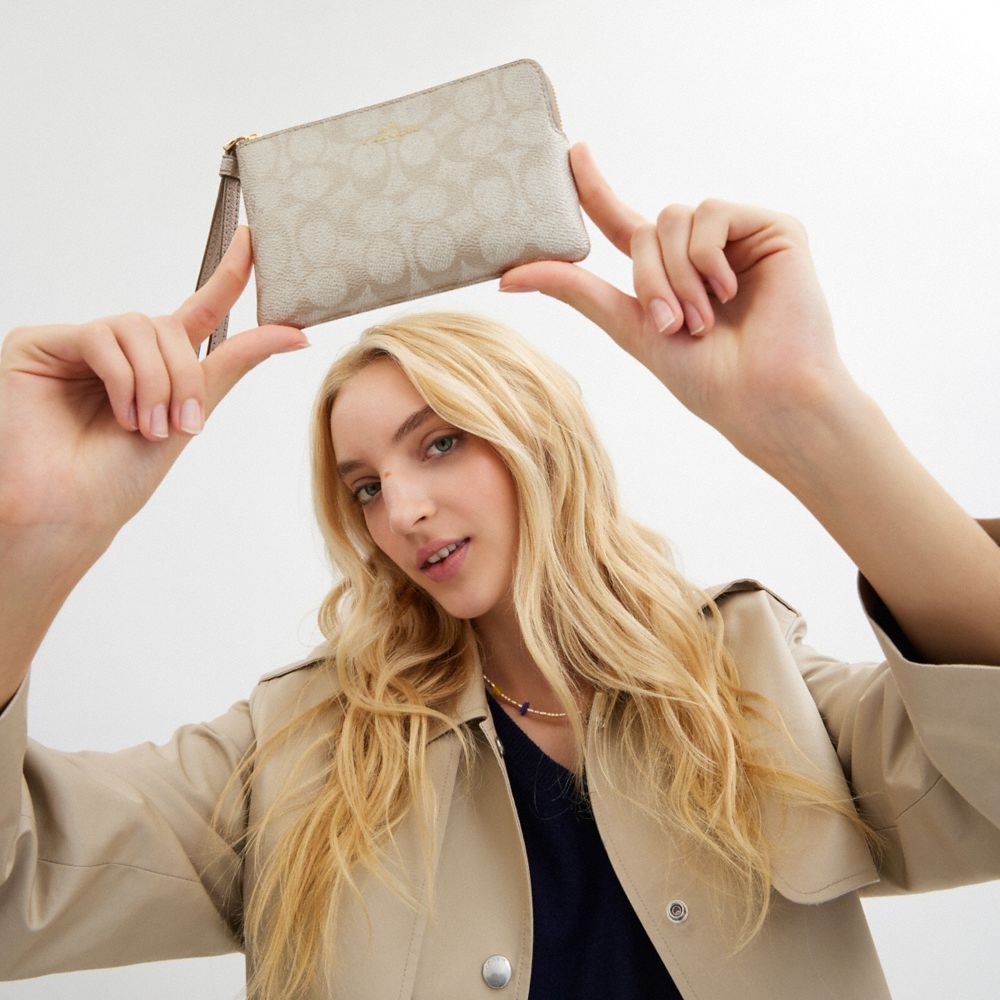 CORNER ZIP WRISTLET IN SIGNATURE CANVAS (COACH CW964)