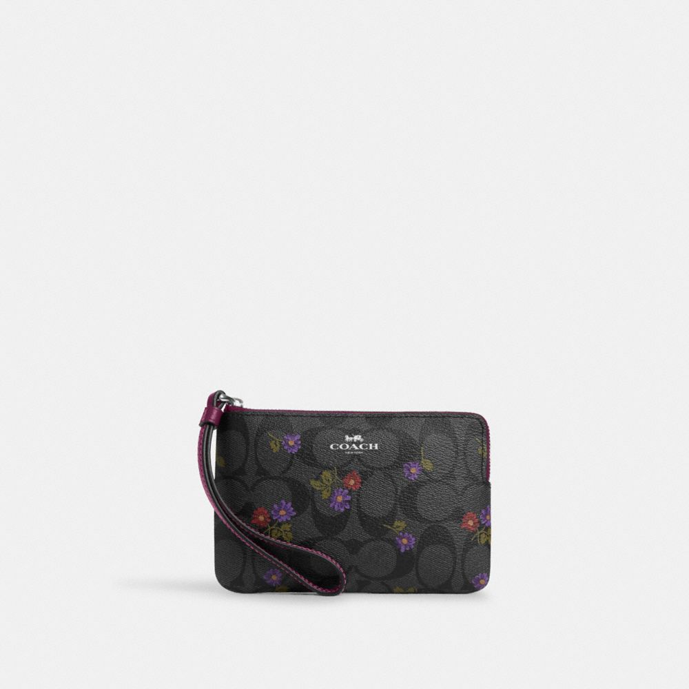 COACH FACTORY OUTLET PRICE CHART - CM867 - CORNER ZIP WRISTLET IN SIGNATURE CANVAS WITH COUNTRY FLORAL PRINT - SILVER/GRAPHITE/DEEP BERRY