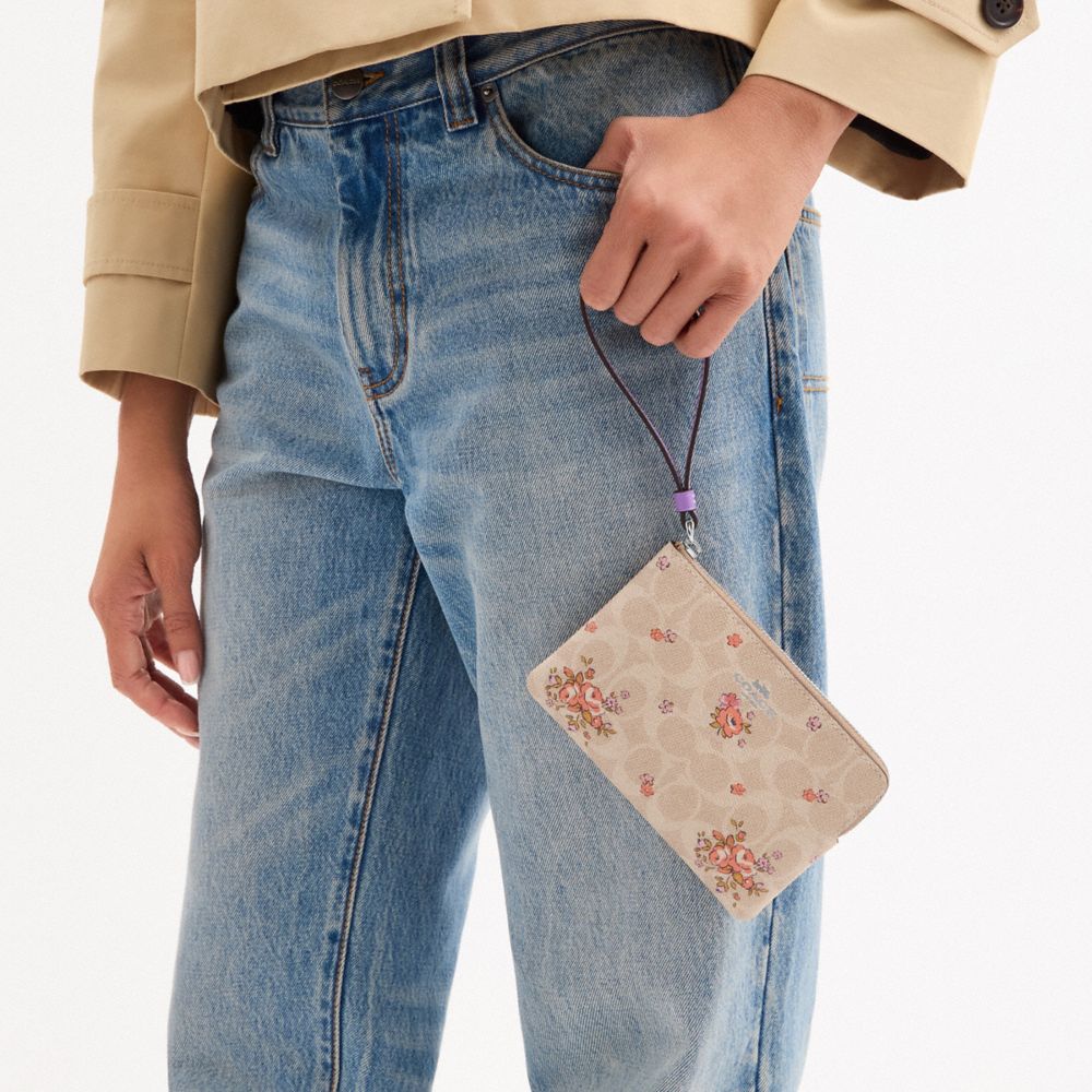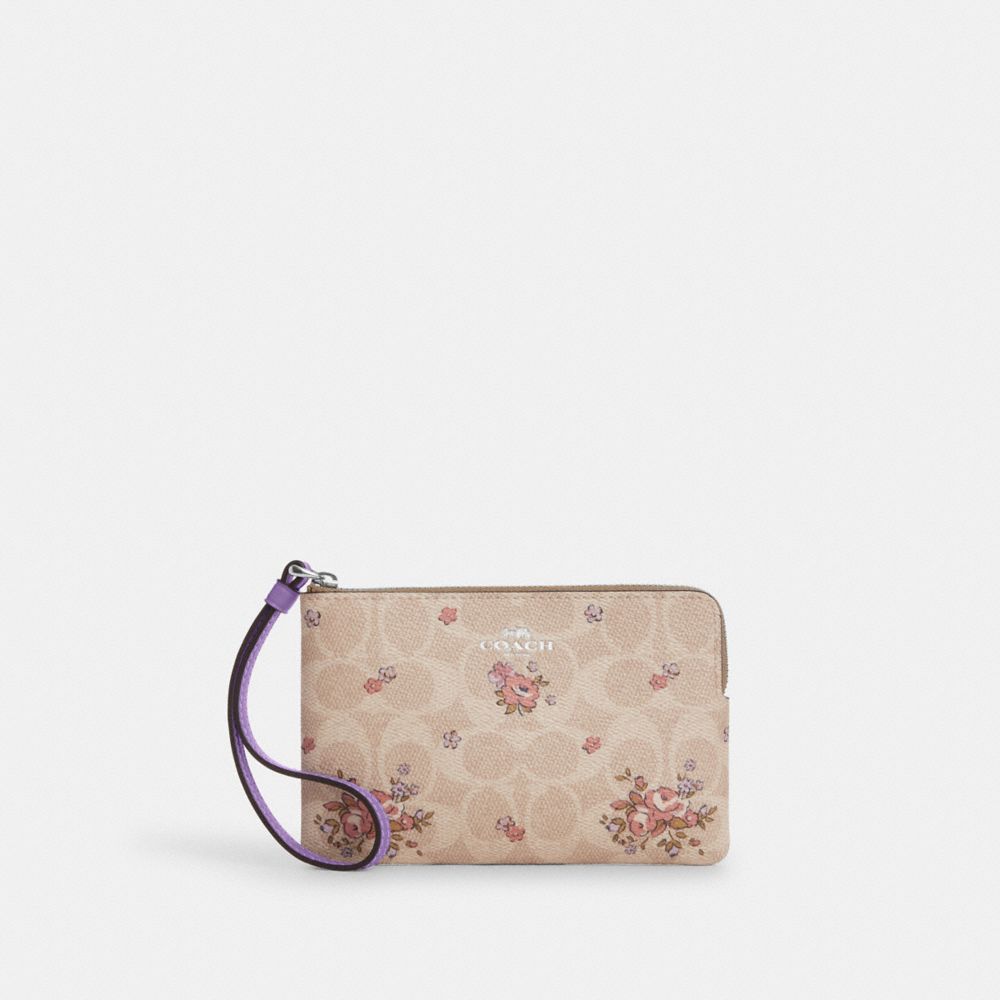 CORNER ZIP WRISTLET IN SIGNATURE CANVAS WITH FLORAL PRINT (COACH CAQ59)