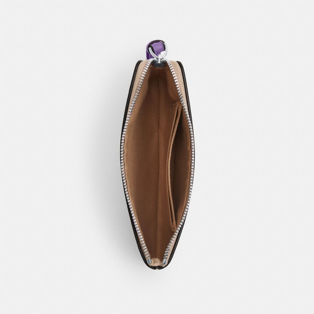 | Signature coated canvas | Two credit card slots | Zip-top closure, fabric lining | Wrist strap attached | 6 1/4" (L) x 4" (H) x 1/2" (W)|Style No. CAQ59|