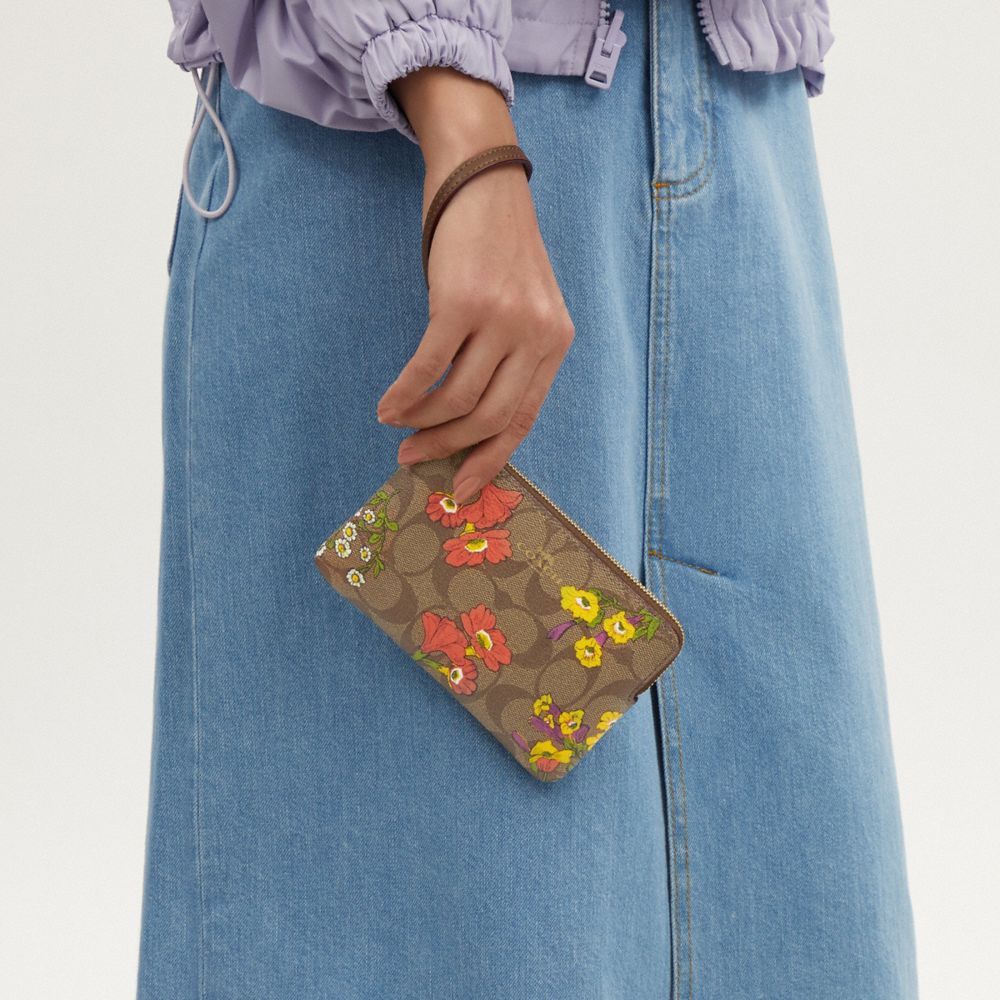 CORNER ZIP WRISTLET IN SIGNATURE CANVAS WITH FLORAL PRINT (COACH CR814)
