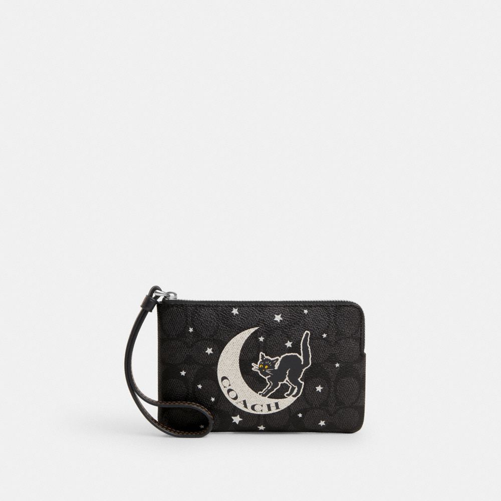 COACH FACTORY OUTLET PRICE CHART - CW869 - CORNER ZIP WRISTLET IN SIGNATURE CANVAS WITH HALLOWEEN GRAPHIC - SILVER/CHARCOAL/BLACK MULTI