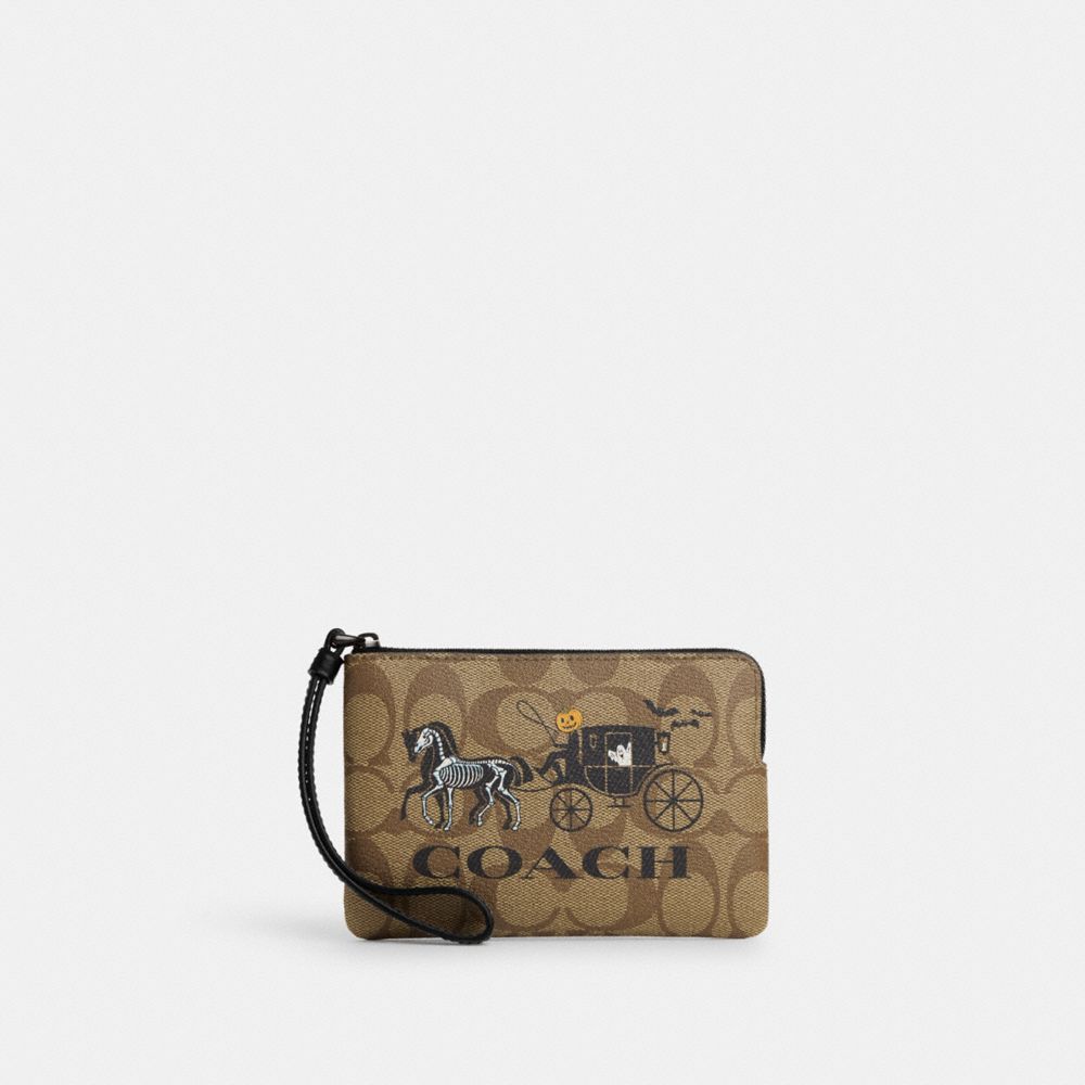 COACH FACTORY OUTLET PRICE CHART - CN006 - CORNER ZIP WRISTLET IN SIGNATURE CANVAS WITH HALLOWEEN HORSE AND CARRIAGE - BLACK COPPER/KHAKI BLACK MULTI